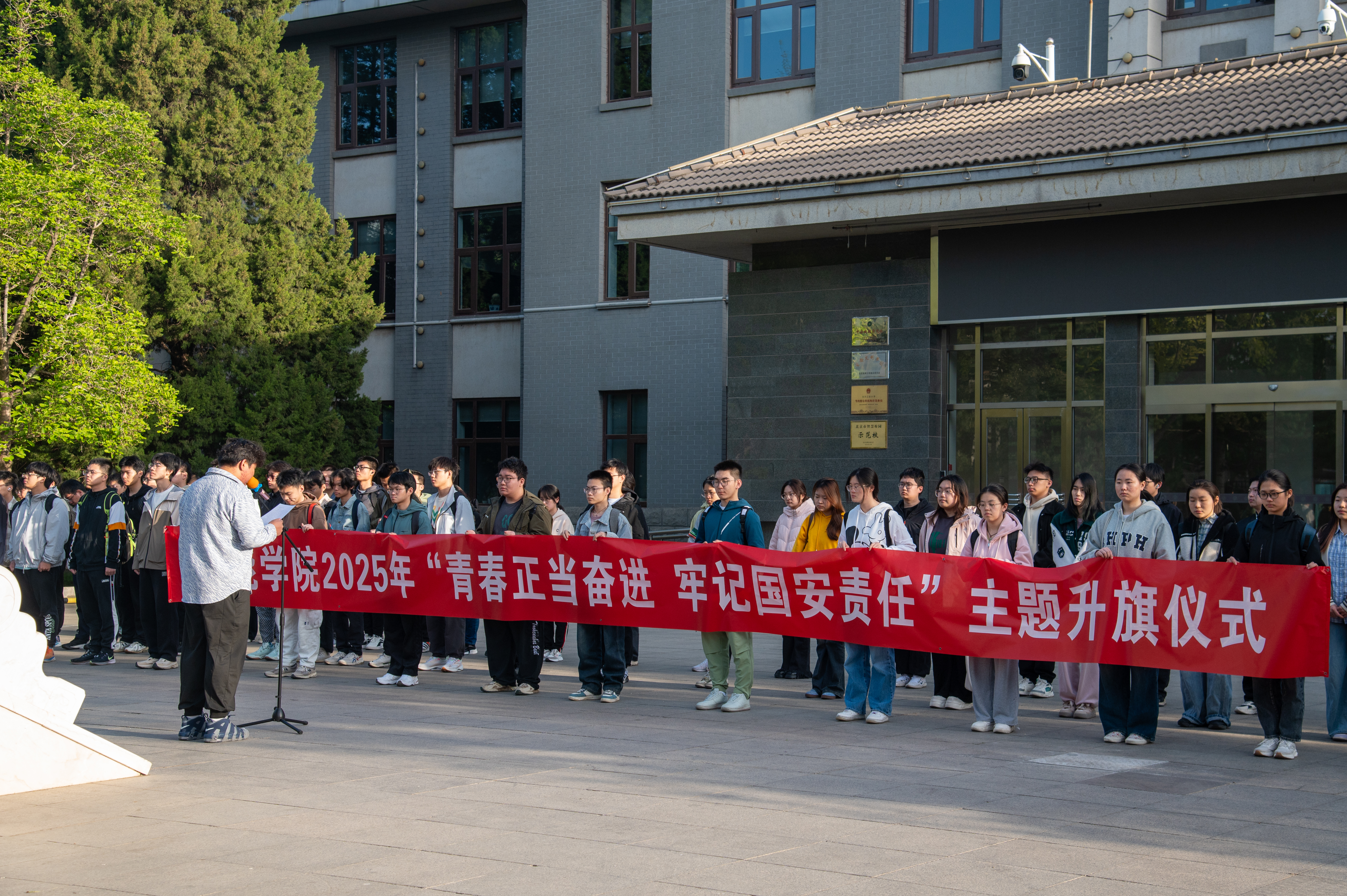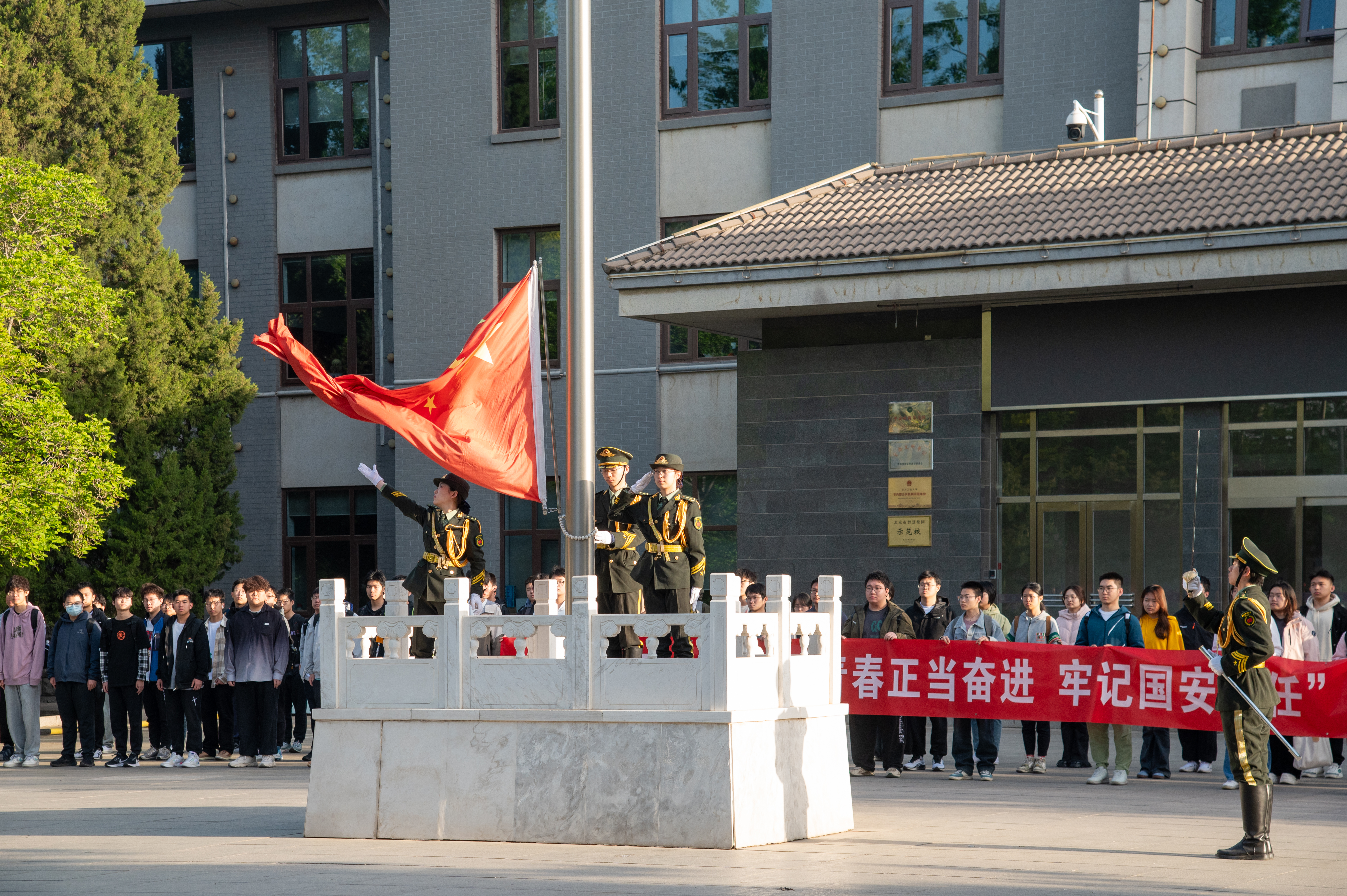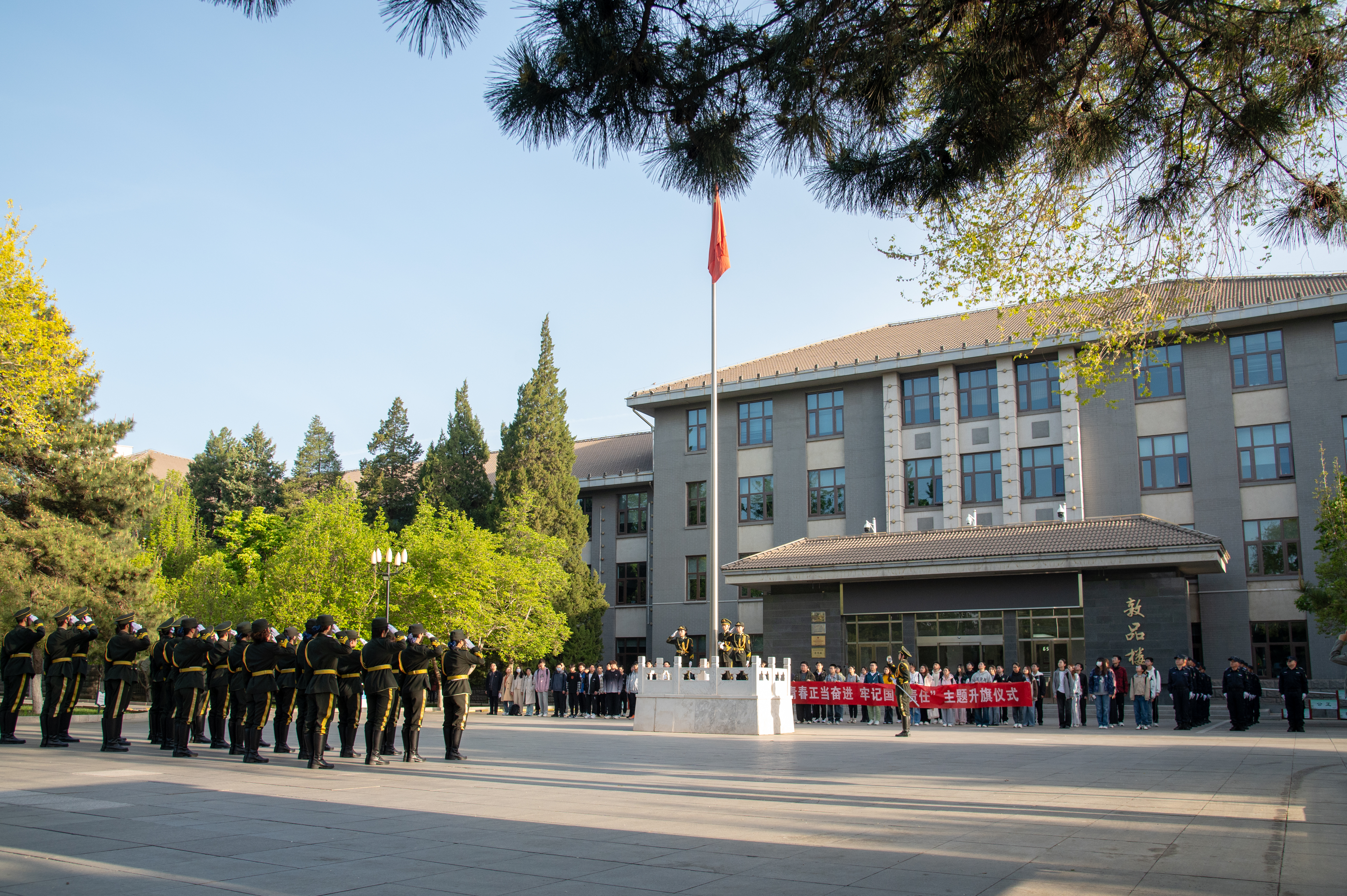 于2024年4月15日清晨在敦品楼前举行庄严的升旗仪式。学院副院长周京华、直属党支部副书记李旭、班导师、全体本科生和校警队共同参与本次活动。