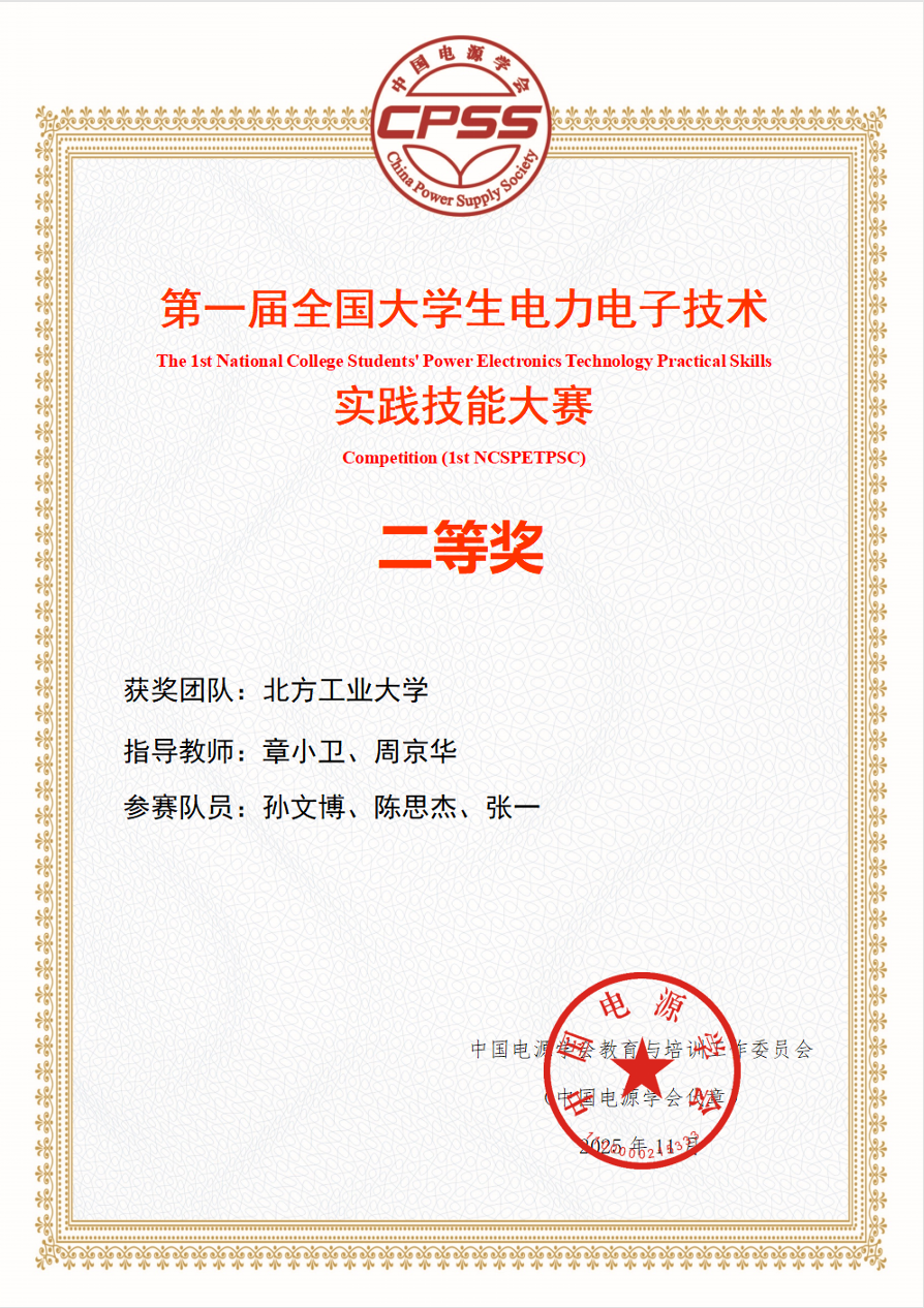 团队围绕系统建模、仿真验证与设计报告展开深入研究,从全国225支队伍中脱颖而出,成功晋级全国40强。决赛中,面对全新赛题,三位同学沉着应对、紧密协作,高效完成了程序编写与系统调试等任务,最终斩获全国二等奖的竞赛佳绩。