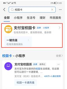 (1)支付宝充值:打开支付宝搜索“校园卡”或“校园派”,选择“支付宝校园卡”,如图所示,选择亚洲成人网